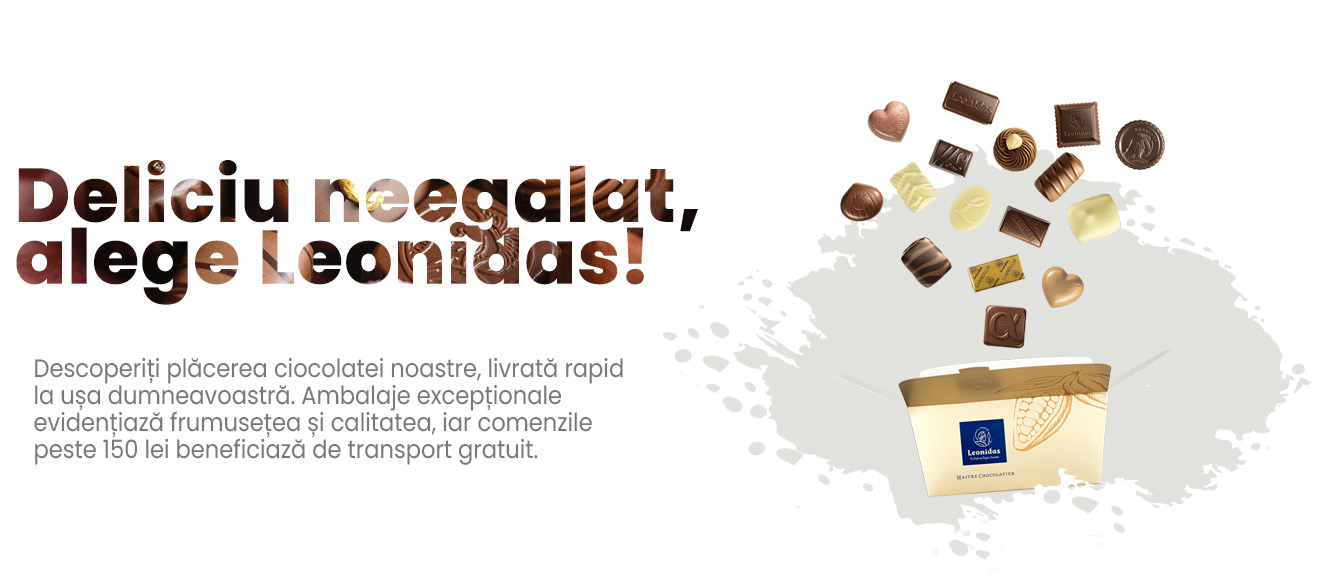 Vă invităm să explorați colecția noastră online sau să vizitați una dintre boutique-urile noastre pentru a descoperi personal măiestria ciocolatei Leonidas. Fiecare vizită este o oportunitate de a descoperi noi delicatese, de a învăța despre arta ciocolatei belgiene și de a găsi cadoul perfect care să atingă inimile celor dragi.