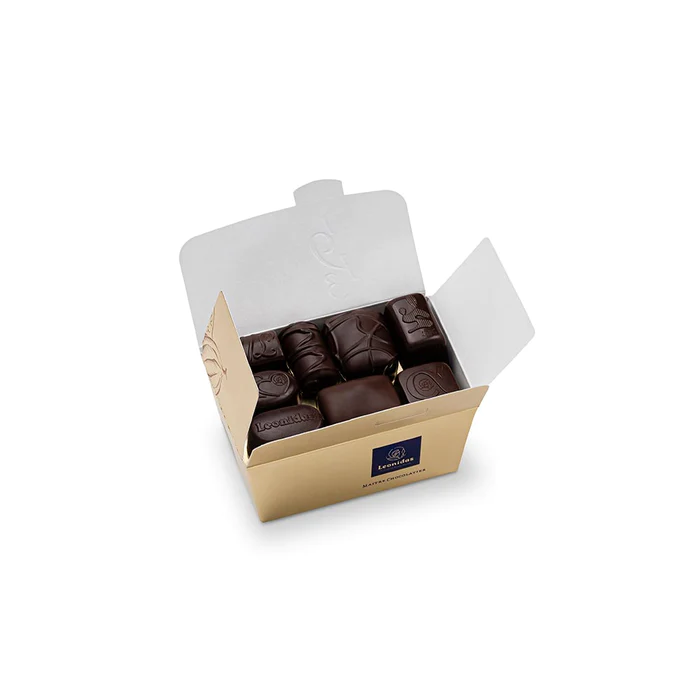 Ciocolată Neagră - Eleganță și Intensitate: Ballotin-ul personalizat poate găzdui o selecție de ciocolată neagră, simbol al eleganței și intensității gustului. Cu arome complexe și texturi fine, ciocolata neagră de la Leonidas oferă o călătorie senzorială plină de descoperiri. Fiecare mușcătură devine o experiență captivantă.