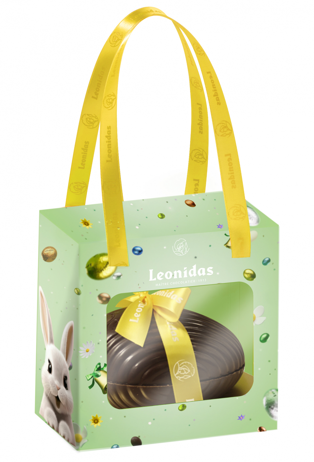 Transformă Paștele într-un festin cu Ou Paste ciocolata neagra 200g de la Leonidas: un ou de ciocolată de lapte de 120g, împreună cu 80g de mini ouă și praline.