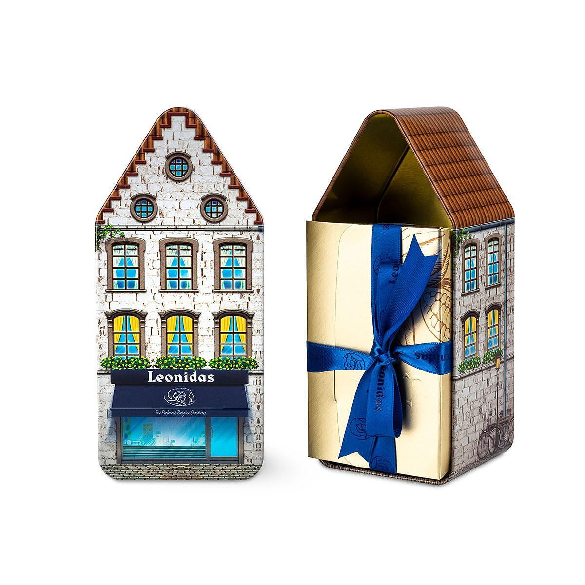 Pentru a va simti mai aproape de tara de origine a pralinelor Leonidas, am creat special cutia metalica sub forma de casuta traditionala belgiana.